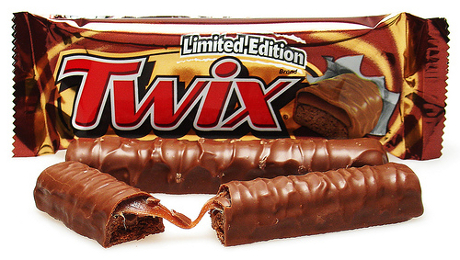 The Twix candy bar is a butter cookie topped with a thick layer of caramel and the whole bar covered in dairy milk chocolate. Twix candy fingers are about four inches long, and half an inch thick, and two of these are packaged together in a single wrapper. The Twix brand is owned by Mars, Inc who are one of the largest confectionery manufacturers globally.